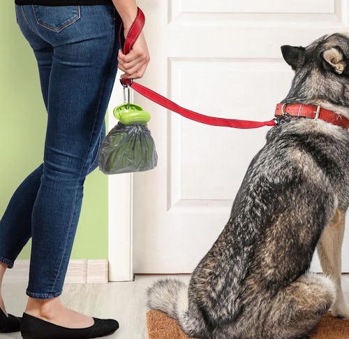 A portable pooper scooper that clips on your leash
