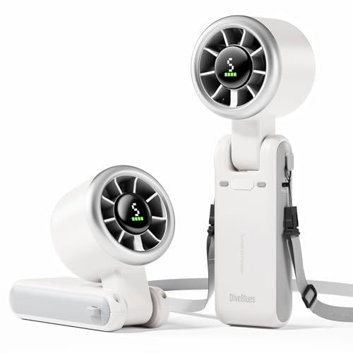 A handheld turbo fan with 5 wind speeds & a 12-hour run time