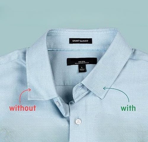 “These ingenious collar stays replace the cheap plastic stays that come with the shirts and use a small (but powerful) magnet to keep the collars from flying away, especially when not wearing a tie. Makes for a great polished, yet casual look,” raved one reviewer. These stiff stays slip neatly into your collar to hold its structure and keep you looking sharp from the moment you put on the shirt to the second you take it off. They even come in two different sizes to fit different sized collars.