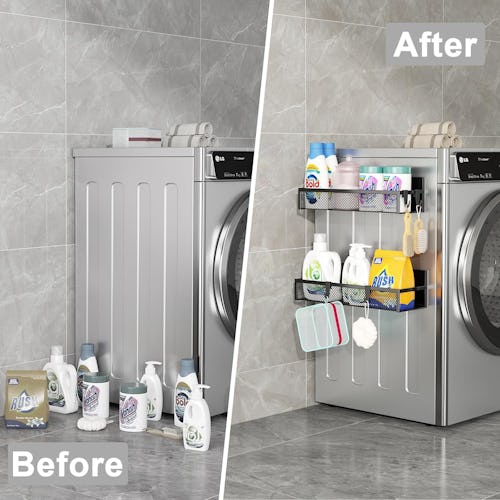 These magnetic shelves can be mounted to the side of your refrigerator or washing machine to give you a ton of storage space without taking up any valuable floor space. Reviewers found them to be sturdy and easy to clean, giving them a stellar 4.8-star overall rating after 4,000 shoppers weighed in. They come in two sizes and they can hold up to 11 pounds each. Plus, the four removable hooks can store oven mitts, cooking utensils, and more.