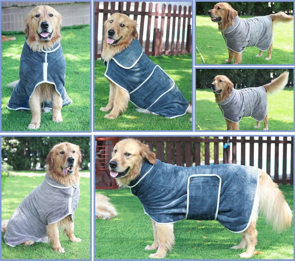 Why does a bath make the dog want to run around the house, shaking bath water on every surface? Who knows? But everyone knows there is no stopping it. This dog bathrobe lets that wet dog do as they please without making a mess. It absorbs the water, drying the dog as it protects your home. All you need now is dog slippers. It comes in six sizes and six colors.
