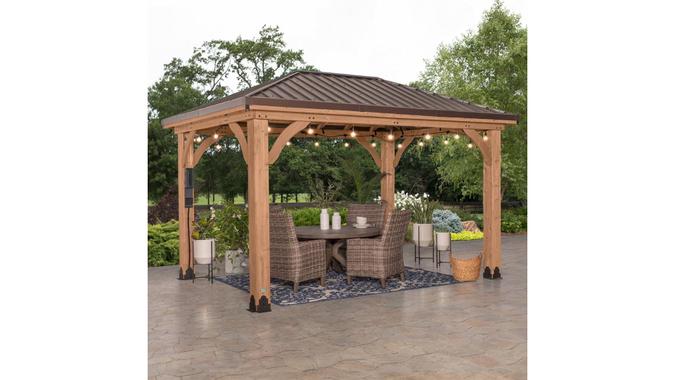 If you’re looking to revamp your backyard or outdoor area, you can’t go wrong with the Backyard Discovery 14-inch-by-10-inch Cedar Gazebo. This gazebo is crafted with 100% cedar wood and powder-coated steel brackets, making it rot and rust-resistant.
