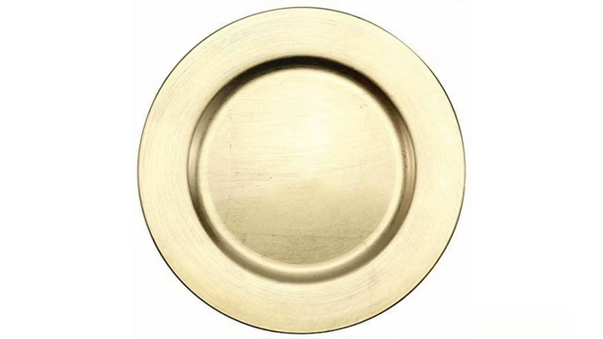 Keep the gold theme going with a six-pack of gold charger plates from Walmart. The 13-inch metal chargers fit most dinner plates and will serve as a dramatic base layer. Place them on the table underneath white or seasonal plates to give your table an elevated look without spending much.