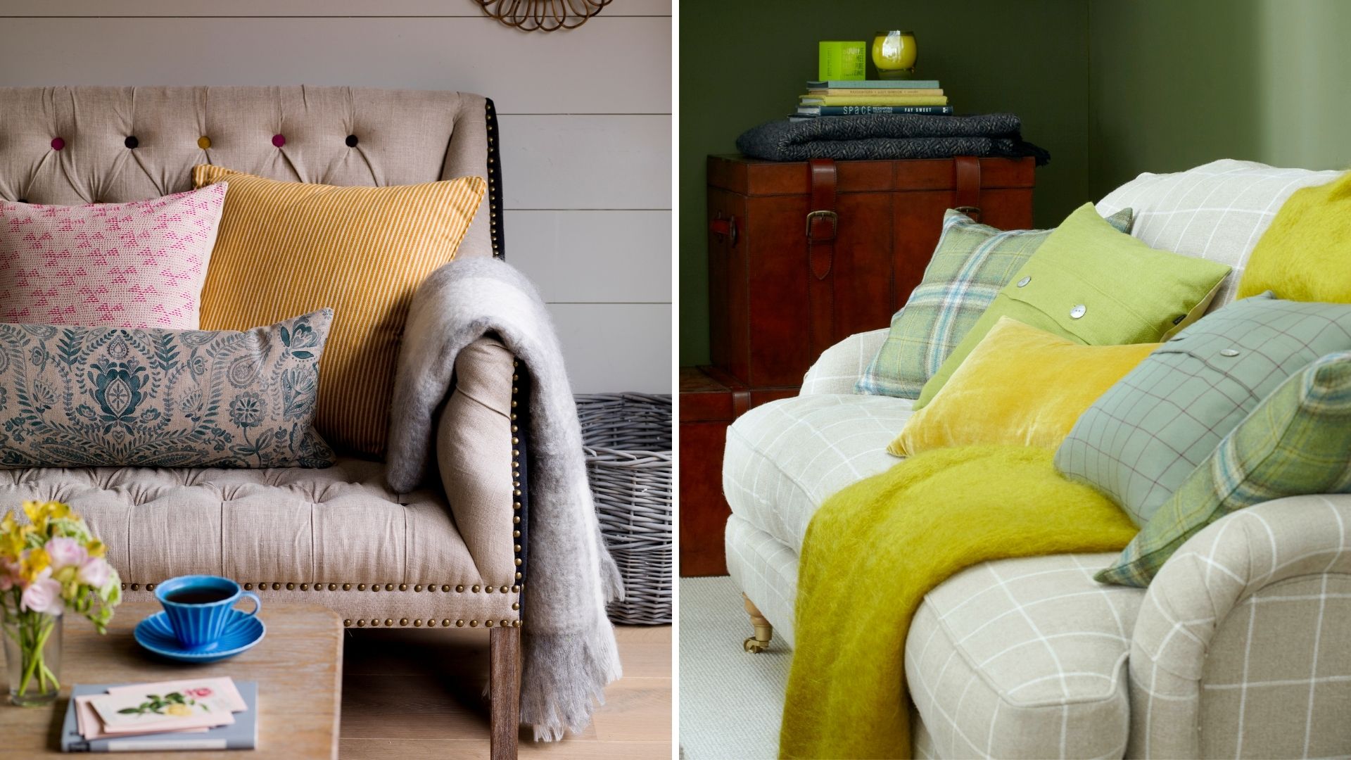 If you want to make a living room feel different, it's always a good idea to swap out items that take up a lot of surface area, from rugs and curtains to other soft furnishings, like armchairs and cushions. Head to our round-up of professional decluttering methods if you have trouble knowing what to keep and what to get rid of.