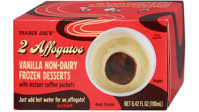 Just because you can’t do dairy — whether you’re vegan or dairy doesn’t like you as much as you like it — doesn’t mean you don’t deserve a luxurious Italian dessert. Trader Joe’s brings you this staple of gelato shops, the affogato. Each package comes with two cups of vanilla non-dairy frozen dessert and instant coffee. Just open a cup, pour the coffee into the well within the dessert and add an ounce of hot water. That’s all it takes to bring a gorgeous affogato right to your table. It’s a perfect after-dinner dessert or afternoon pick-me-up.