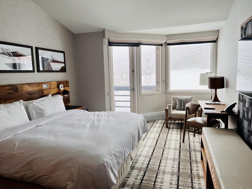 Overall, it has 254 rooms, including 20 suites, combining mountain décor (rustic wood finishes) with modern luxury (plush bedding, soft white finishes, in-room espresso maker, on-site ski concierge).