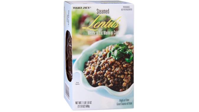 If you want to maintain muscle mass and heart health in your golden years, make sure you’re eating enough protein-rich foods like lentils. These Trader Joe’s steamed lentils are vacuum-sealed and fully cooked. You can toss them into a salad or sauté them with some garlic and spinach.