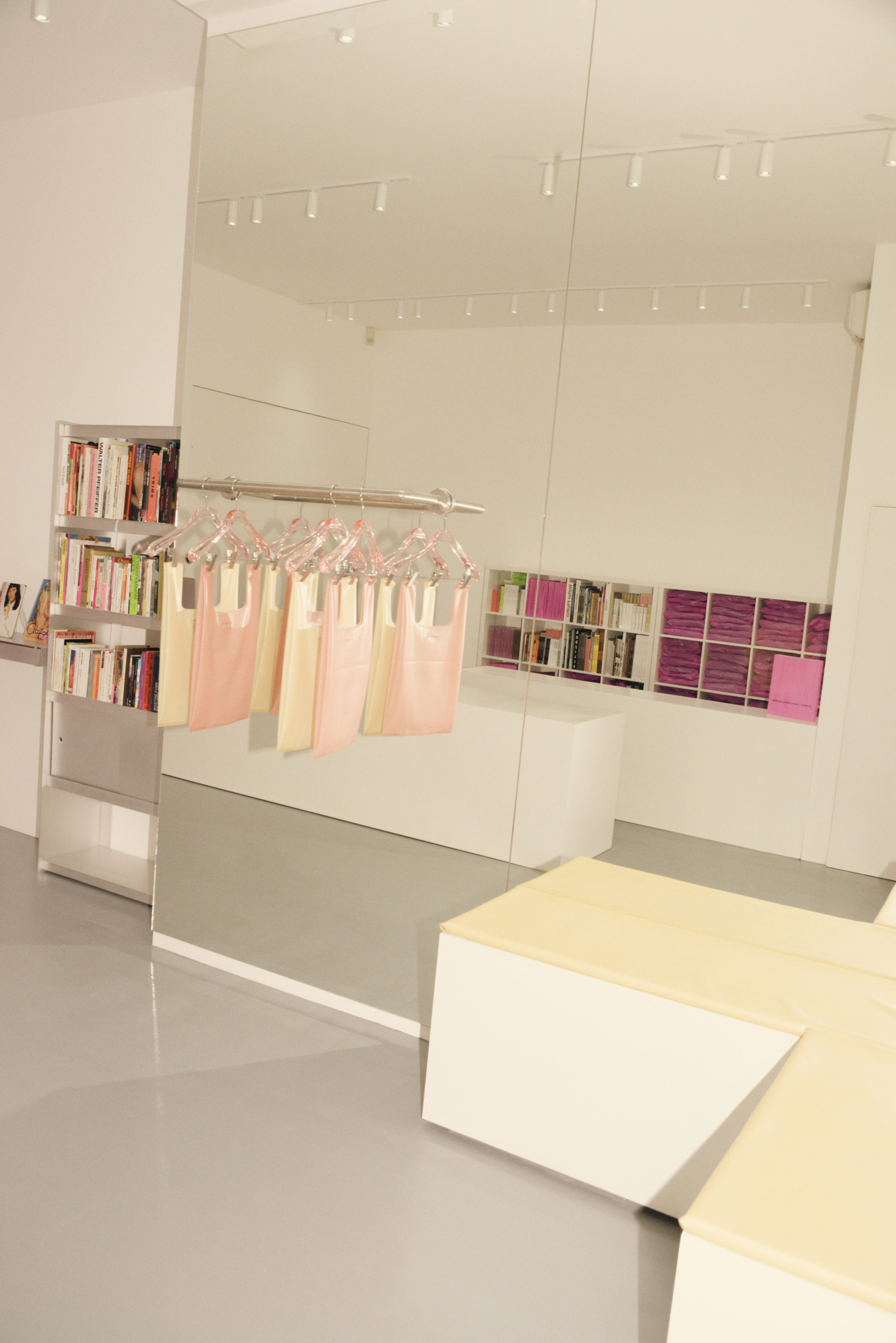 Past a see-through, matte pink front door, the store absorbs visitors in a succession of chrome bookcases, mirrored walls, and eye-catching posters, zines, collectibles, and tomes. Composed of just a few, straight, essential lines, the interior scheme of Climax Books is as minimalist as it is aspirational, and strips it back to the basics to bring its offerings to the fore. 'Cause Books Are Exciting, in case you didn't know.