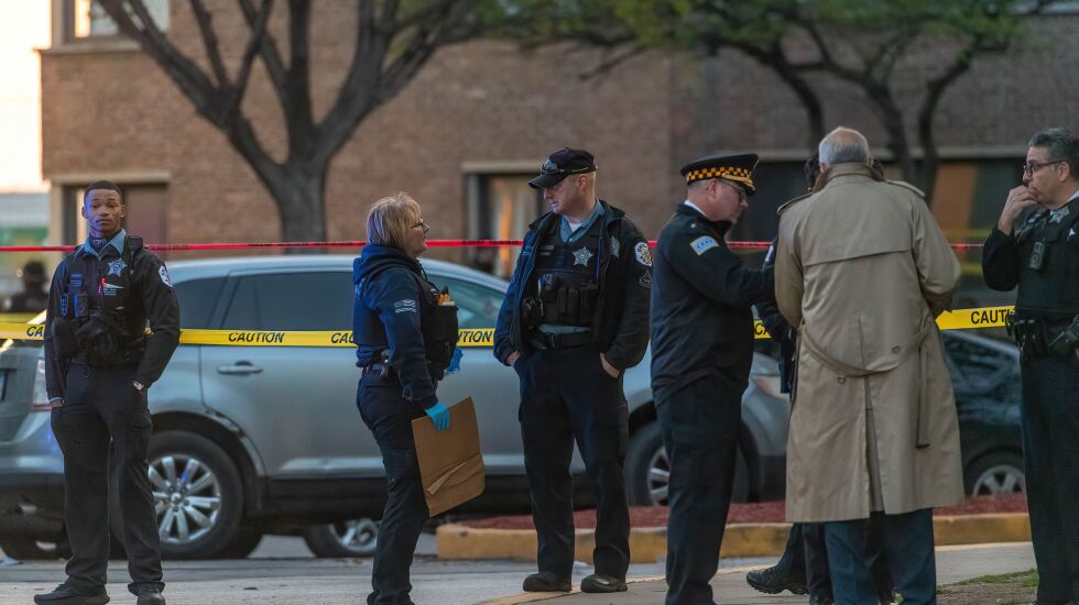Police said the shooting occurred about 6:15 p.m. in the 6300 block of South Calumet Avenue in Grand Crossing, around the corner from the 6400 block of South Dr. Martin Luther King Jr. Drive, known as “O Block.” An officer-in-distress call was broadcast over police radios after a large crowd gathered.