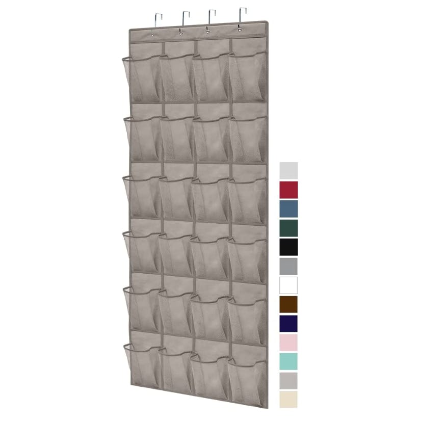 You’ll won’t end up with a pair of shoes hidden under your bed or in the back of the closet if you hang them all up on this over-the-door shoe rack. Not only will they stay in place on the back of your door, but the 24 breathable mesh pockets will also make it easy to see all of your pairs.
