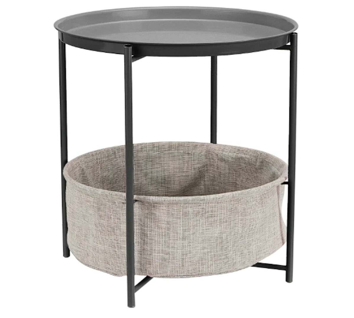 An easy-to-clean end table with a linen fabric basket