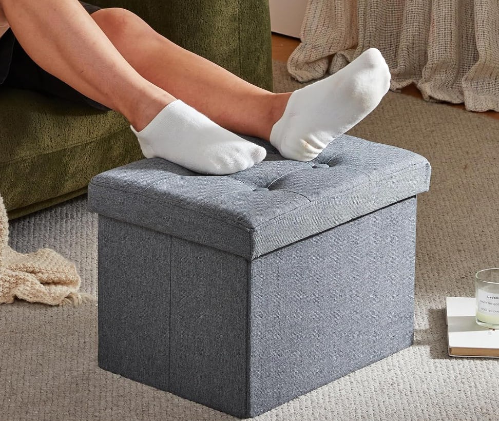 It might be compact at just 17-by-13-by-13 inches, but this storage ottoman features a lift-off lid that reveals a roomy hidden interior compartment. It has a fabric-covered exterior and a foldable frame that allows it to collapse flat when not in use. It’s lightweight yet well-constructed, with reinforced panels and a smooth, padded top. “It's storage and also used for comfort at the [same] time! Genius,” wrote one reviewer. You can buy your own in one of five colors.