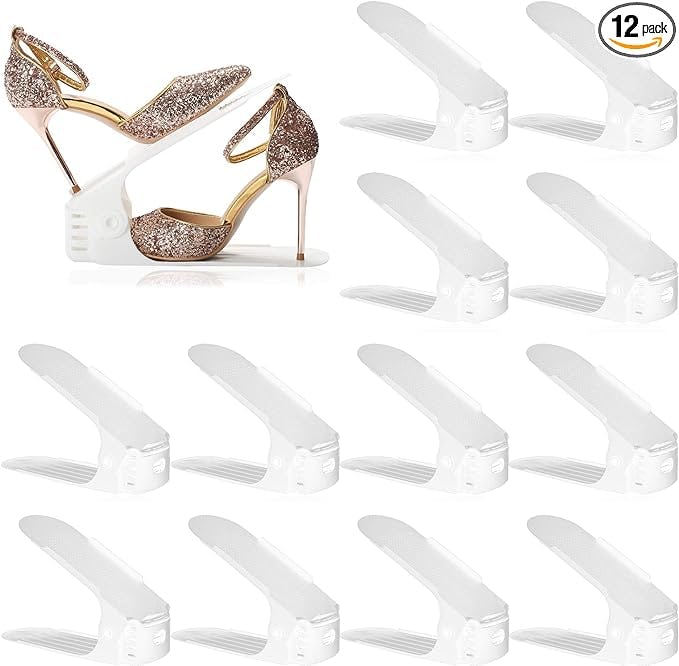 This shoe slots organizer comes in a 12-pack, giving you plenty of pieces to mix and match for any closet setup. The adjustable design lets you customize the height between shoes, and the double-deck stacking means you can fit two pairs where there used to be one. Each slot holds two shoes securely, keeping them lined up and easy to see.