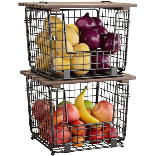 Thanks to these wire storage baskets, you can finally see what’s in your pantry without digging through a pile of bags. The two baskets stack on counters or shelves, giving you a tiered way to organize apples, potatoes, onions, or any loose produce. The brown wire frame keeps items contained but visible, and the open design lets air circulate around your vegetables.