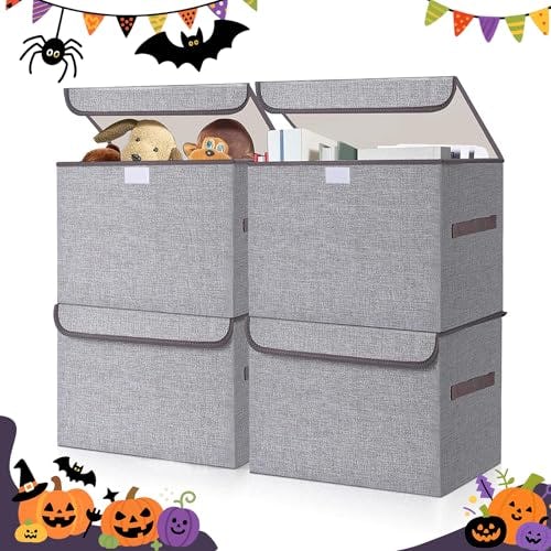Linen storage bins with flip-top lids