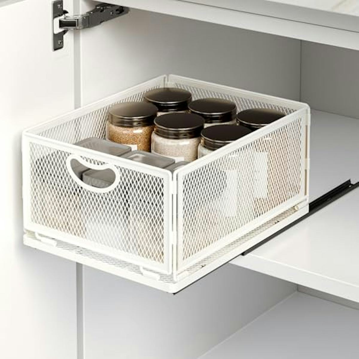 Made from carbon steel, this pull-out cabinet organizer gives you the drawer space you’ve been wanting. It features a silent sliding design that glides on heavy-duty rails, plus a solid basket-style shelf with raised sides to keep everything inside. A smooth powder-coated finish helps resist wear, and the hardware is included for a straightforward setup.