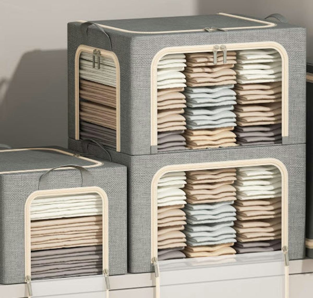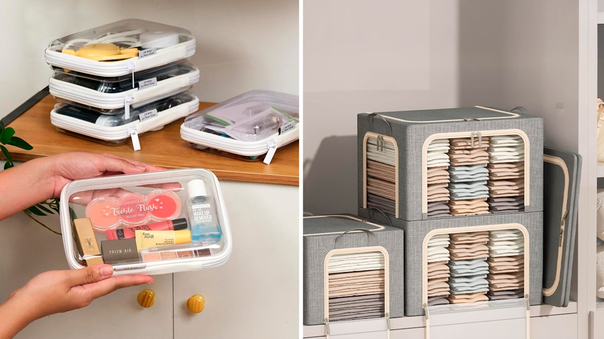 The accessibility of these clothing storage bins is impressive. The pack comes with three bins, each with three openings, a metal frame that helps keep their shape, and a foldable design for easy storing when not in use. The linen exterior comes in three neutral color options, with clear windows so you can see what’s inside without unzipping everything.
