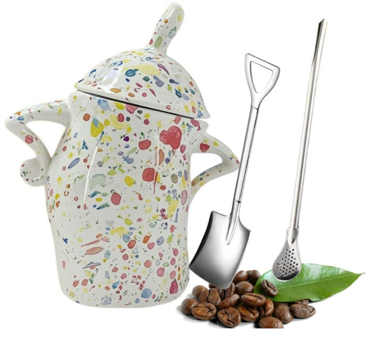 A ceramic storage jar with stirring spoons & a hint of attitude