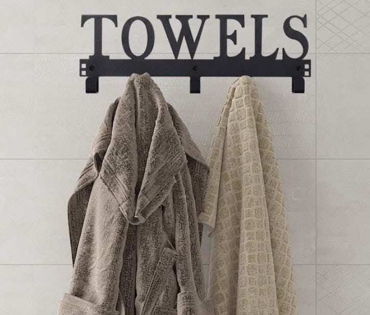 This over-the-door hook rack is a cute way to hang your towels. It has a solid metal build with a sandblasted surface and five evenly spaced hooks that don’t crowd each other. There’s also the option for six hooks if five doesn’t cut it. And while black goes with nearly everything, you can also choose from five other colors.