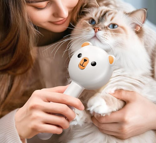 This pet brush uses gentle steam technology to groom your pet without a full bath, stress, or a mess. It combines deshedding and cleaning with massaging, so your furry friend might actually enjoy the grooming process. The brush features two misting modes — one for the top coat and one that gets a little deeper — and all the hair is collected on the surface for easy disposal.