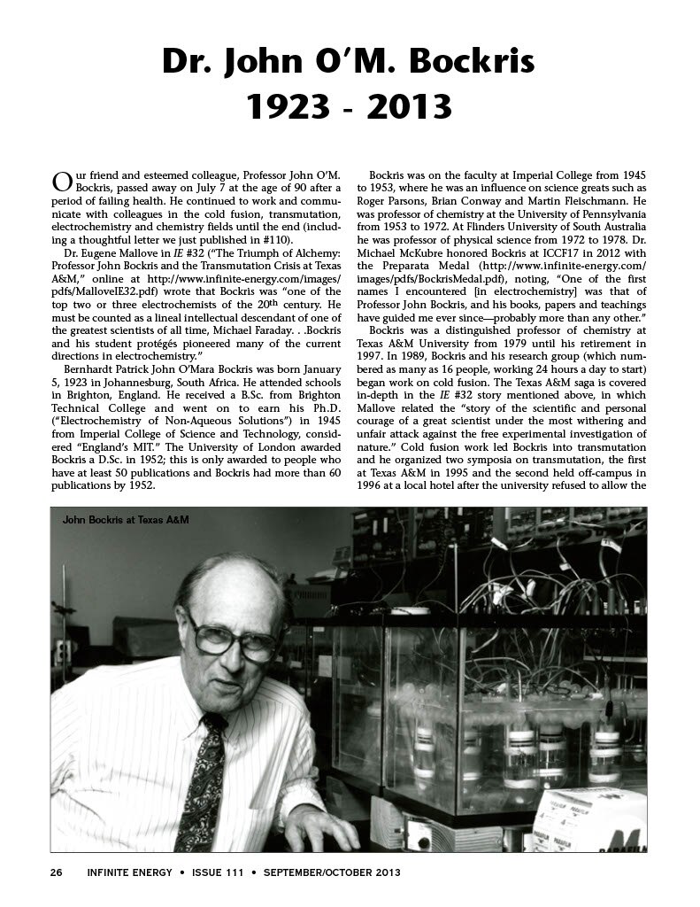 "I hadn't heard that before, Bockris was saying something revolutionary and sound," he said.