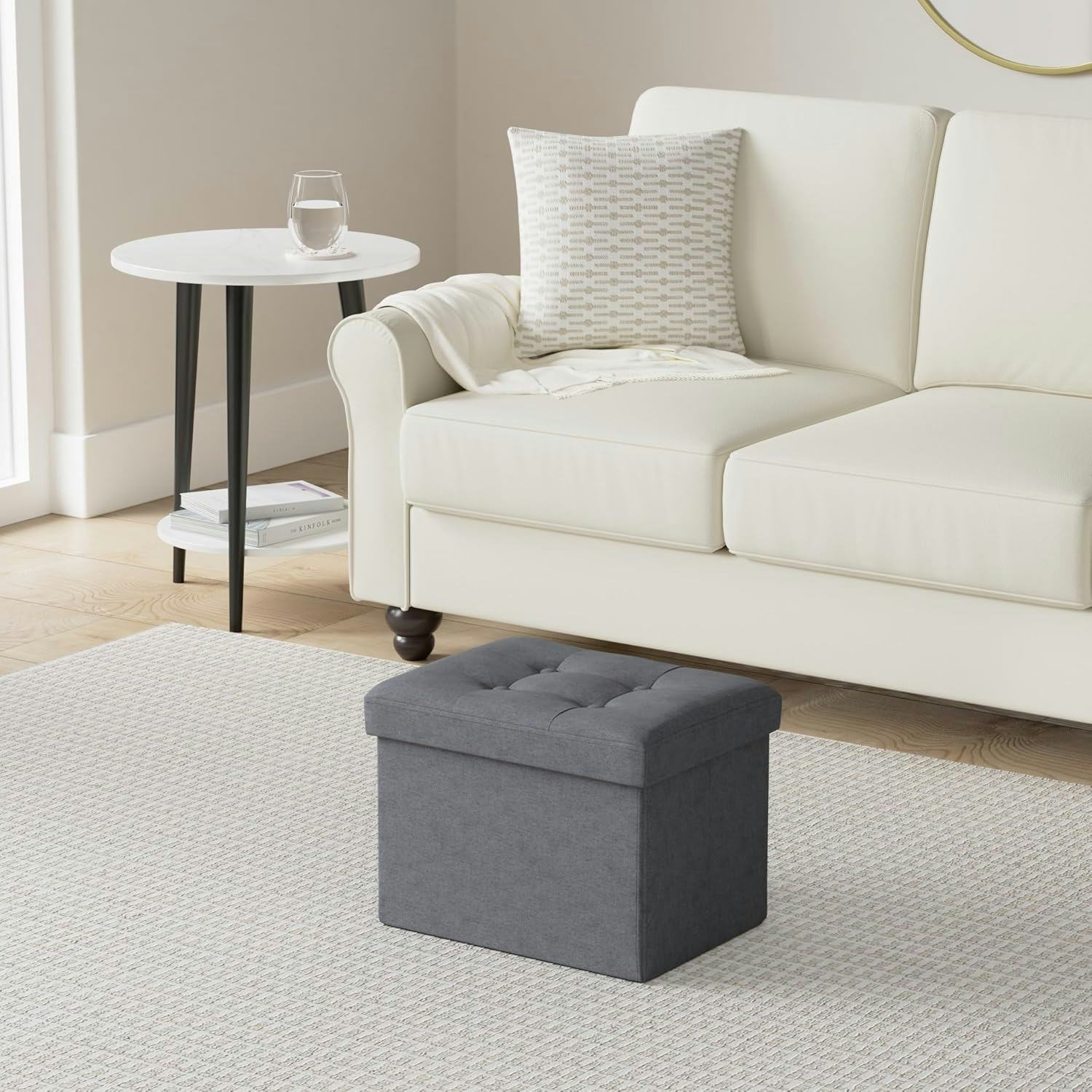 This foldable ottoman doubles as storage and a comfy footrest. Padded with thick foam and wrapped in linen-style fabric, the stool is designed to be sturdy yet soft. Inside, there’s room for blankets, books, or pillows, keeping living room clutter out of sight. The ottoman folds flat when not in use, so it’s perfect for apartments, dorms, or cozy living spaces where every square foot counts. You can get the footrest in several colors and two sizes.