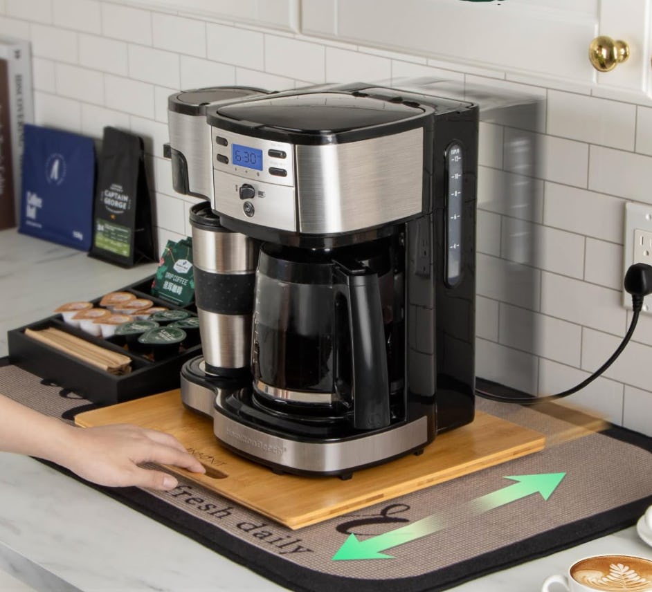 If you're wrestling with your coffee maker or air fryer every morning, this bamboo appliance slider will put an end to that. With silent rubber wheels, it lets you slide heavy appliances in and out without scratching your counters or putting up a fight. With six size options, it fits everything from mini grinders to 6-quart Instant Pots.