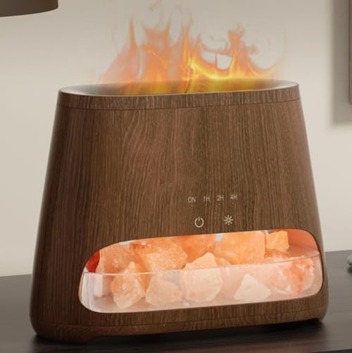 This Himalayan salt lamp will emit a gentle glow and a realistic-looking flame effect that’ll make any room feel cozy and lift your mood. It’s also an essential oil diffuser so you can enjoy relaxing scents. It has three brightness levels, a timer function, automatic shut-off, and shoppers mentioned that it’s very quiet.
