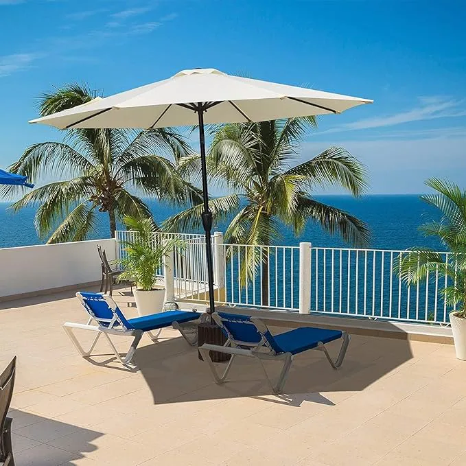 Blue, red, green — with eight gorgeous shades to choose from, don’t be surprised if you’re tempted to grab this patio umbrella in more than one color. The stainless steel ribbed brackets help it resist wind as well as rust, while the crank mechanism makes it easy to open and close within seconds. You also have the choice of three sizes: 7.5 feet, 9 feet, or 10 feet.