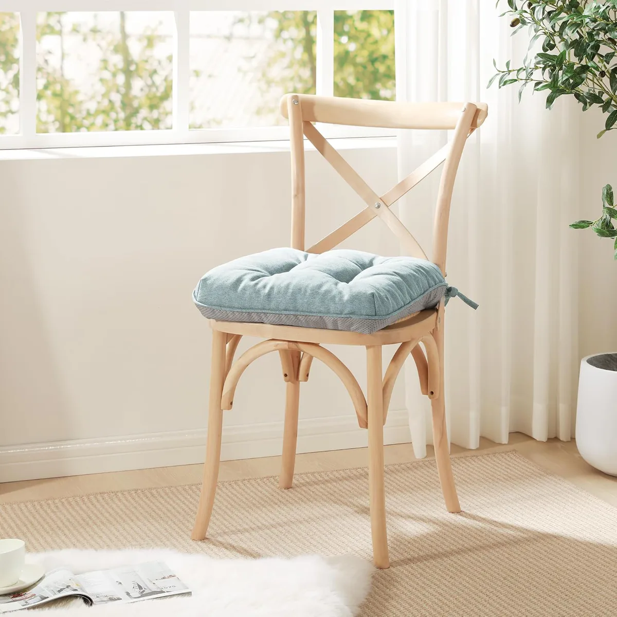Ditch those flimsy chair cushions you’ve likely been using in favor of these plush ones. They’re filled with soft memory foam that contours to the shape of your backside for added comfort — and the nonslip undersides work to keep them from shifting around on smooth wooden chairs. They’re also suitable for indoor as well as outdoor use.