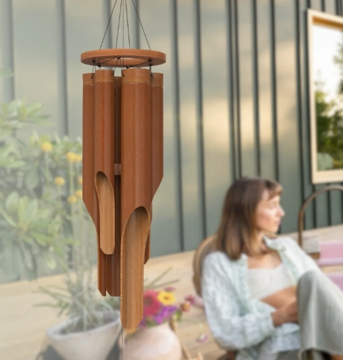 Handcrafted wind chimes made from rustic bamboo