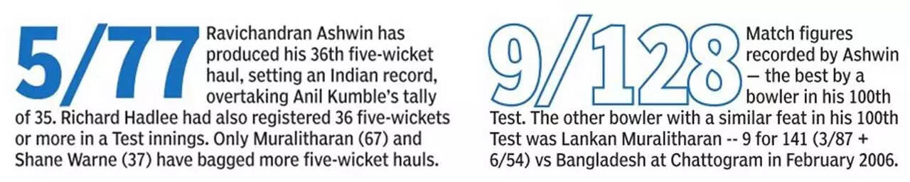 <p>Ashwin finished with nine wickets in the match and his 36th five-wicket haul in a career which began in 2011. </p>AP