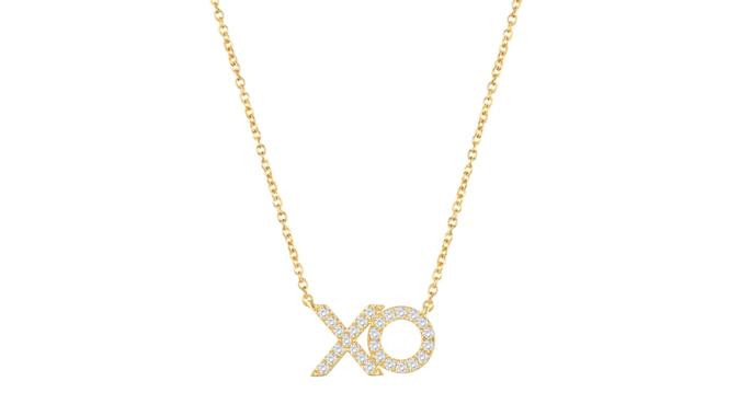 This round brilliant 14 karat gold XO necklace is a sparkly, sweet gift to give that special someone in your life, like your wife, girlfriend or daughter.