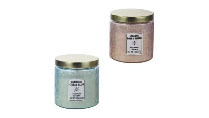 These new scented candles are available in your choice of energize (citrus bliss) or calm (rose and amber) fragrances. Each candle comes in a jar with a metal lid so you can treat yourself or give to a friend.