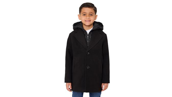 Dressy kids’ winter apparel doesn’t have to be expensive! This youth-sized Rothschild dress coat comes with a layered hood for added warmth and is perfect for wearing to holiday events.