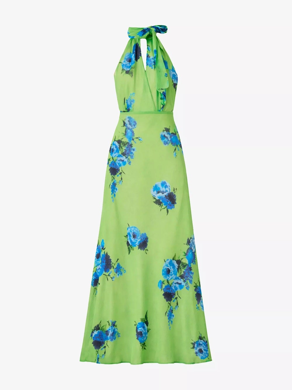 Ro&Zo Athena Green Floral-Print Tie-Detail Dress, £179