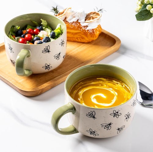 There’s nothing like a warm soup on a cold day, and it tastes even better out of these ceramic soup mugs. They're made of eco-friendly clay that’s safe for your whole family to use. With a 24-ounce capacity, they can hold all kinds of meals. Airtight lids keep them hotter for longer. However, their large handles will stay cool, protecting your hands.