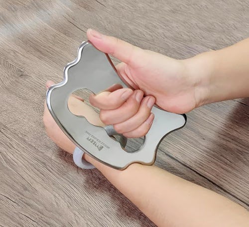 This stainless steel massage tool is suitable for every part of your body. Its smaller waves are perfect for your face, neck, and arms, while its straighter edges are best for large areas. It can help relieve soreness and pain while promoting blood circulation. Your fingers and hands will fit right into its ergonomic design.