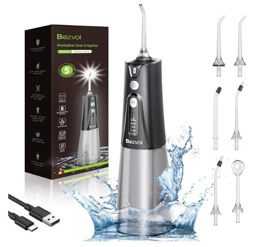 Behold the power of water with this battery-powered cordless water flosser that has five different modes and five different pressure settings. This set includes six nozzles that rotate, capable of reaching every crevice in your mouth for a superior cleaning. You can buy it in one of four colors.