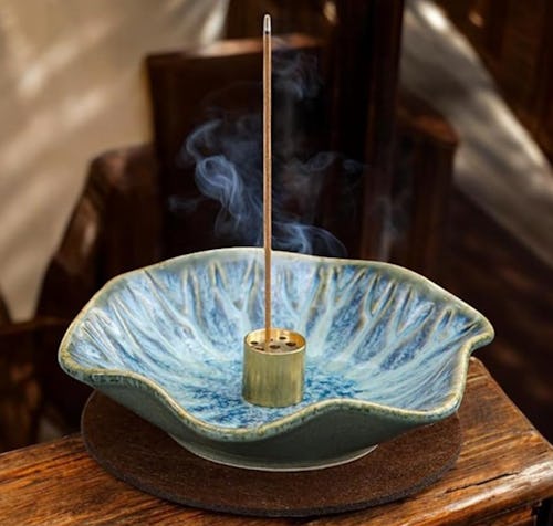 This handcrafted ceramic incense holder helps you enjoy the aromatic benefits of incense without dealing with half of the mess. It has an ash catcher built in, ensuring cleaner counters and tables when you’re done. The kit comes with a burner, three brass holders, a set of tweezers, a brush, a plate, and a handy storage bag to make bringing it on vacation even easier.