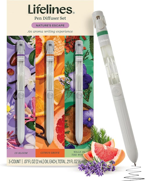 When you jot down notes, to-do lists, or other looming thoughts, these three diffuser pens are filled with calming essential oil blends that come out through the built-in vents at the top. Included are scents called “in bloom,” “citrus grove,” and “walk in the woods.” It’s a true aromatherapy experience.