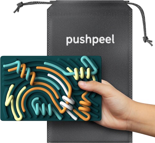 Push the 11 included colorful strings into this silicone activity board, then peel them out and repeat; it’s a stress-relieving, open-ended outlet that you’ll surely enjoy. This pick fits inside the included pouch, so it’s ideal for taking on the go, like while traveling or at a doctor’s appointment.
