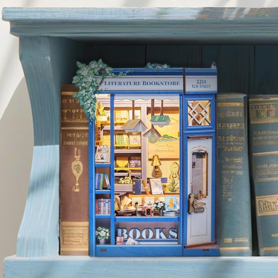 Nestle this charming bookstore on a shelf among your other books for the cutest little addition. It’s made from precisely cut wood and comes ready for assembly. Don’t worry: A detailed manual is included.