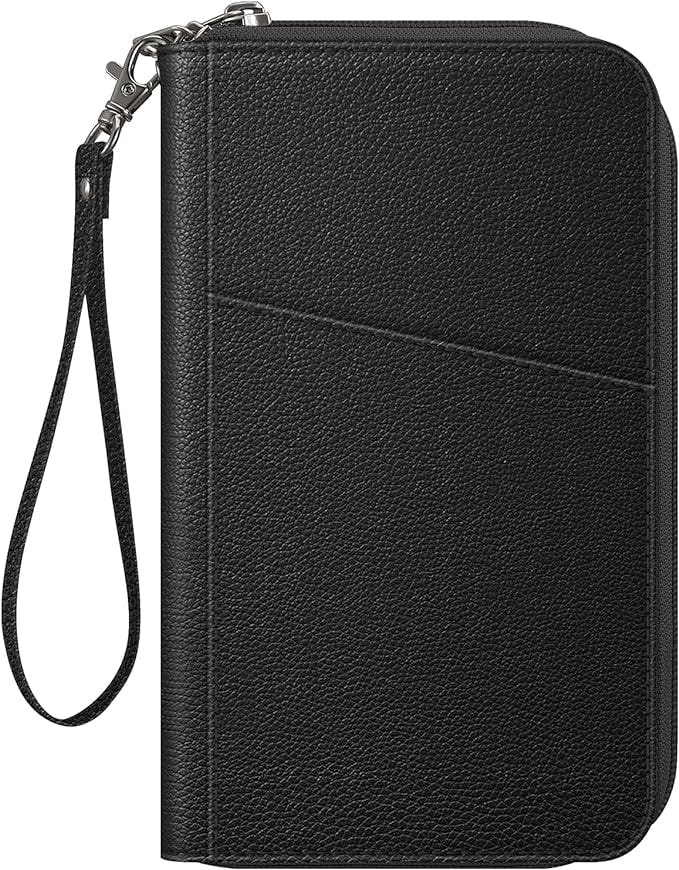 This sleek travel wallet securely organizes all your important documents, passports, and cards. Designed with multiple compartments, it holds everything from boarding passes to credit cards, ensuring easy access during travel. Its RFID-blocking technology protects your personal information from electronic theft, offering peace of mind while you're on the go. Stylish and functional, it's the perfect travel companion for families or solo travelers alike.