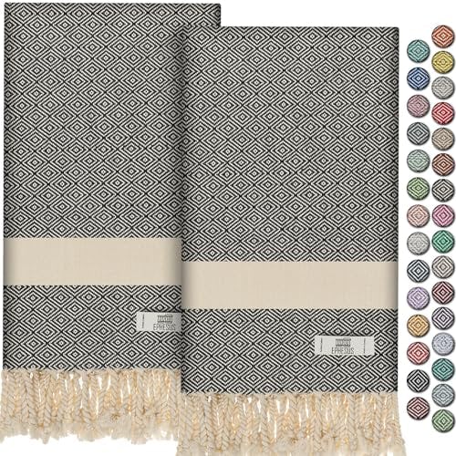 EPHESUS TOWELS Hand Towels - Set of 2 | 18" x 30" - Decorative Turkish Hand Towel for Bathroom, Kitchen, Guest, Face, Hair, Tea, Dishcloth (Diamond, Anthracite)