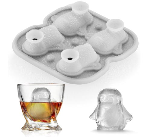 A silicone tray that makes 4 large penguin-shaped ice cubes