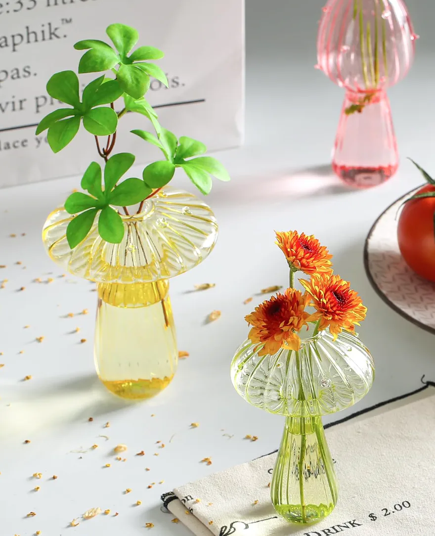 Mushroom-shaped propagation vases for an indoor garden
