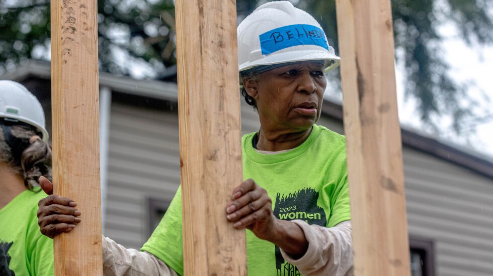 As a drizzle fell on the Far South Side, dozens of women in hard hats hammered away at two-by-fours, helping construct a row of homes for Habitat for Humanity Chicago.