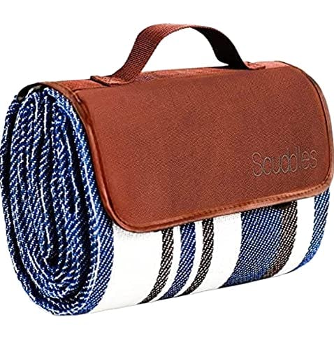 Extra Large Picnic & Outdoor Blanket Dual Layers for Outdoor Water-Resistant Handy Mat Tote Spring Summer Blue and White Striped Great for The Beach