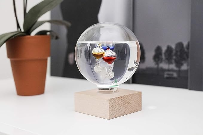 Not only is this Galileo thermometer gorgeous to look at, but it also comes with a stylish base made from genuine beech wood. The colorful globes on the inside are tagged with varying temperatures in both Celsius as well as Fahrenheit — and you can easily tell what the temperature is depending on which globe is floating closest to the top.